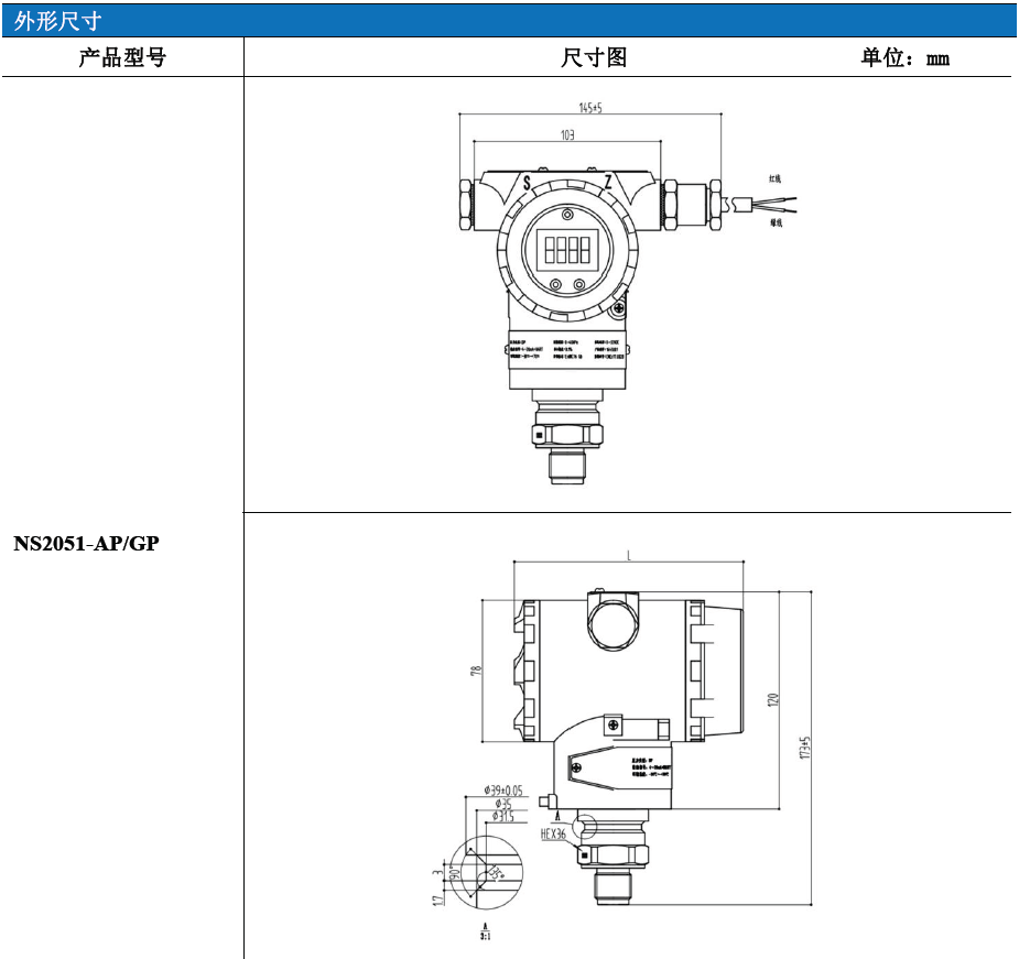 NS2051-AP、GP 單晶硅壓力變送器