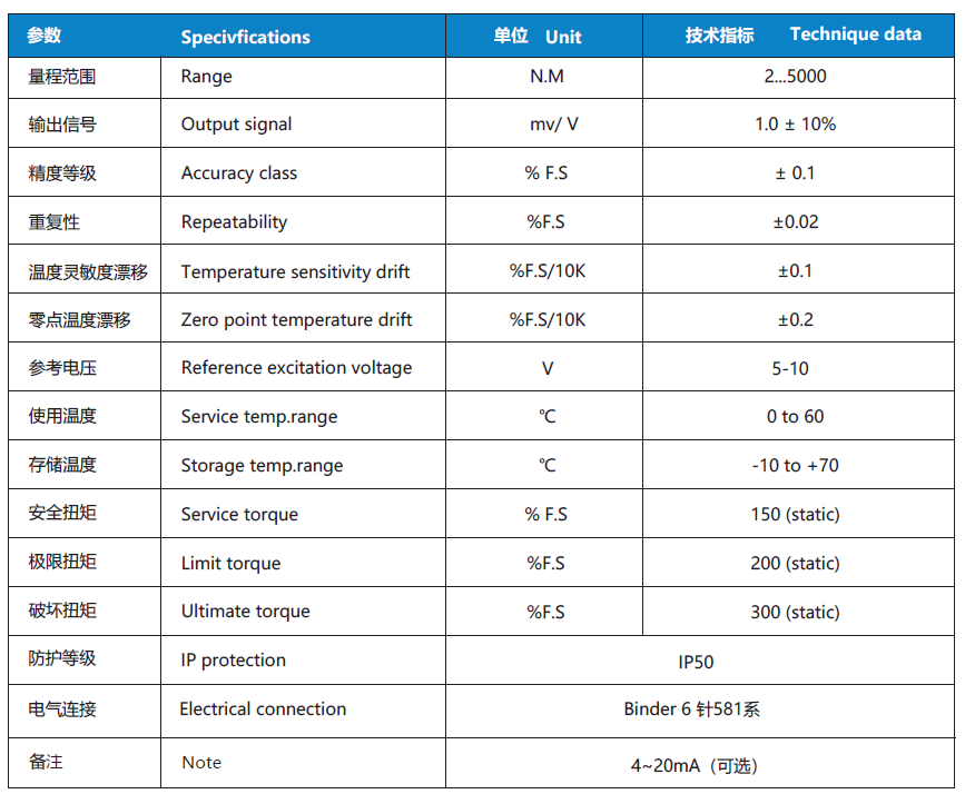 輸出:1mv/V、0~±5/10V、4~20mA可選
