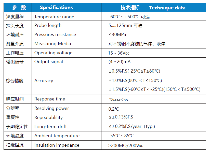 溫差極小,零點溫度補償≤ ± 0.008 % F.S/℃ typ.