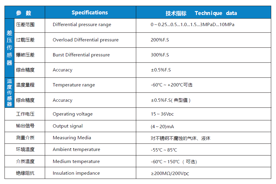 溫差極小,零點溫度補償≤ ± 0.008 % F.S/℃ typ.