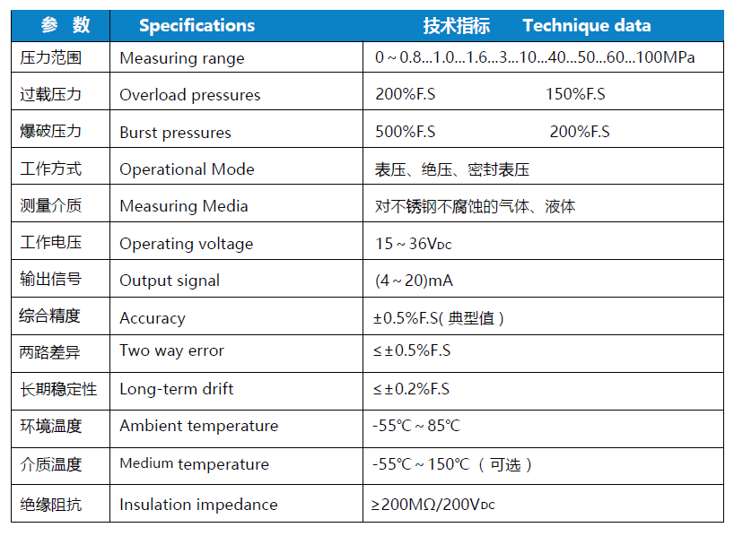 NS-P906系列 中溫壓力傳感器