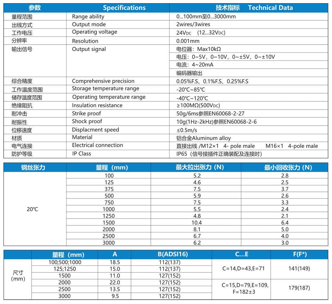多種信號輸出:0~5V,0~10V,4~20mA,RS-485,