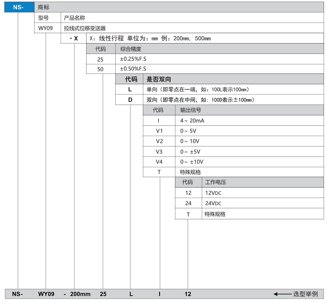 NS-WY09系列 拉線式位移傳感器