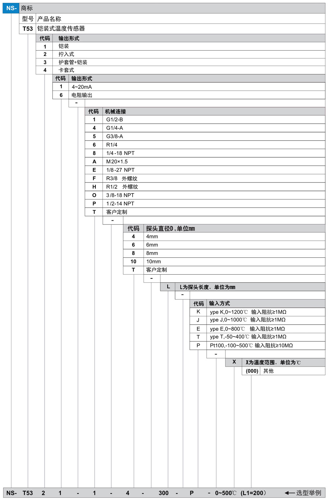 NS-T53 系列 鎧裝式,溫度傳感器